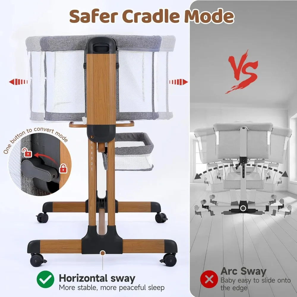 Baby Beistellbett 3-in-1 – Wiege, Co-Sleeper und tragbares Kinderbett mit Rollen und Stauraum